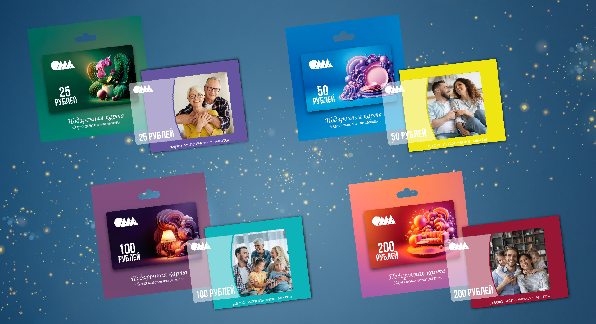 Можно суммировать несколько подарочных карт, купленных в магазине ОМА.